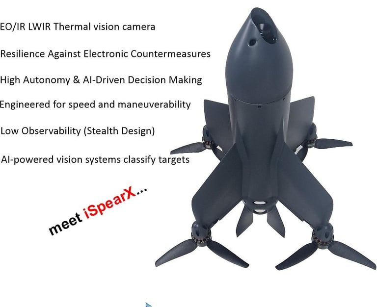 iSpearX AI-powered interceptor/kamikaze UAV is not merely a drone - it is a thinking, sensing, deciding and striking flying weapon.